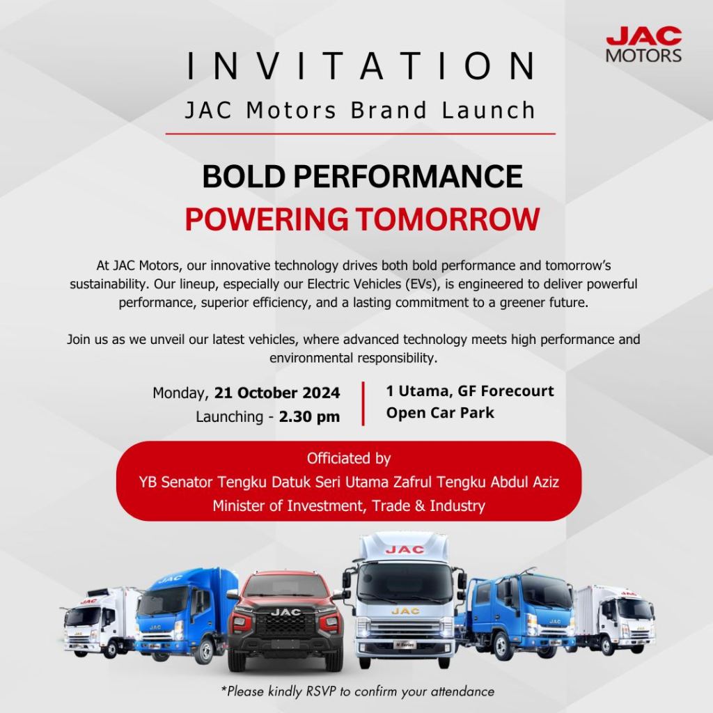Melalui beberapa info yang diterima, syarikat yang bertanggungjawab bagi membawa masuk jenama JAC di Malaysia terbahagi kepada dua entiti berbeza di mana salah satunya memfokuskan pengedaran kenderaan komersial manakala yang bakal mengedarkan kenderaan dalam segmen pikap seperti T9 ini adalah dari syarikat Evolvelectric Motor yang berpengkalan di Petaling Jaya. Dimaklumkan juga bahawa syarikat tersebut telah memberikan “preview” terhad kepada jemputan khas sebelum ini namun tiada penyebaran maklumat secara terbuka buat masa ini dari mana-mana media tempatan.