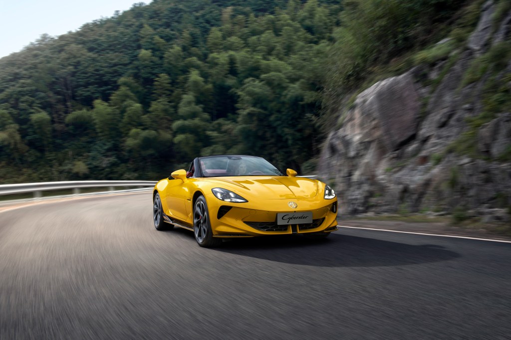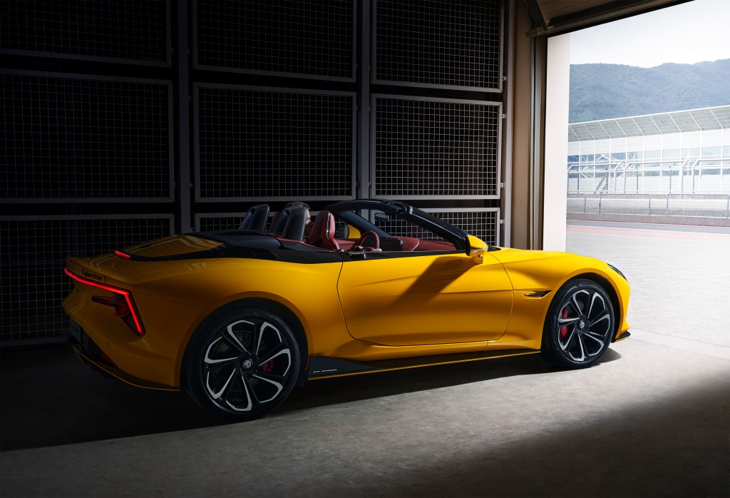 The MG Cyberster will be available in four colors which are Dynamic Red, Camden Grey, Inca Yellow, and English White. The Dynamic Red and Camden Grey options feature black and red interiors, while Inca Yellow and English White come with grey interiors. All models are enhanced by a sleek black hood.