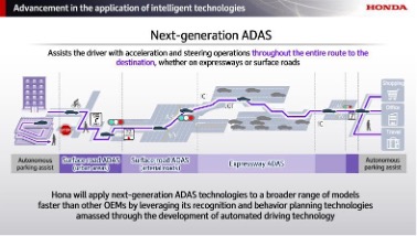 amassed through our automated driving development, Honda is working to develop next-generation ADAS that enables safe and comfortable driving all the way to the destination, including in urban environments. Honda will apply this new, next-generation ADAS to a broad range of key EV and HEV models Honda will launch in North America and Japan around 2027.