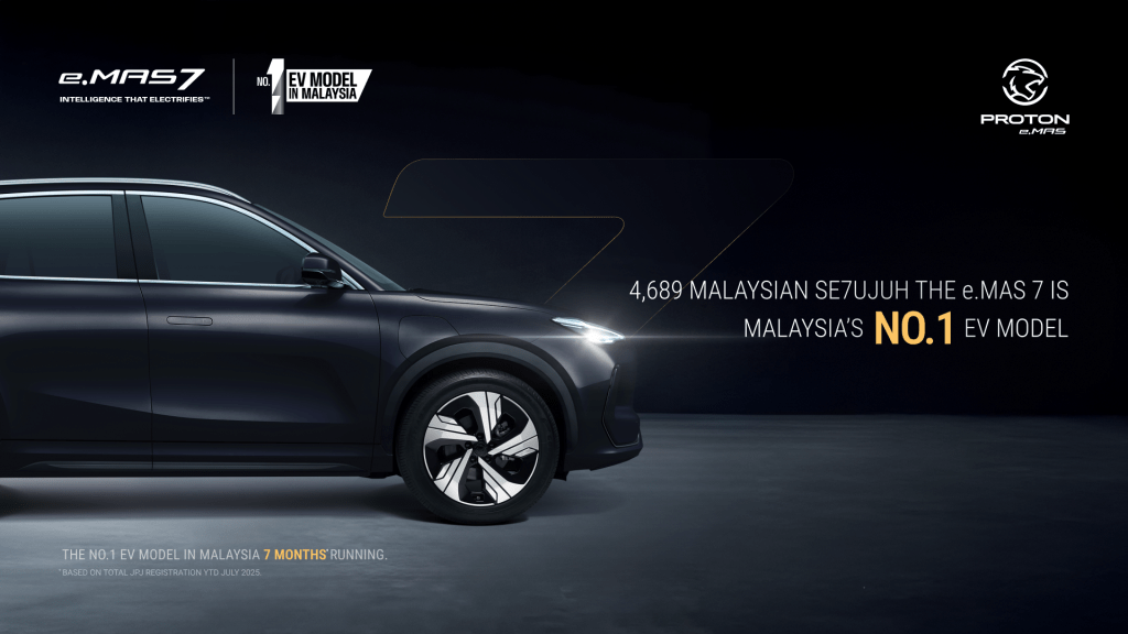 PRO-NET, a subsidiary of PROTON, proudly announces that the Proton e.MAS 7 has maintained its position as Malaysia’s best-selling electric vehicle for the seventh straight month, with 4,959 units delivered as of 31 July 2025. This includes 4,689 units sold domestically and 270 units exported, marking a strong debut year for the model.